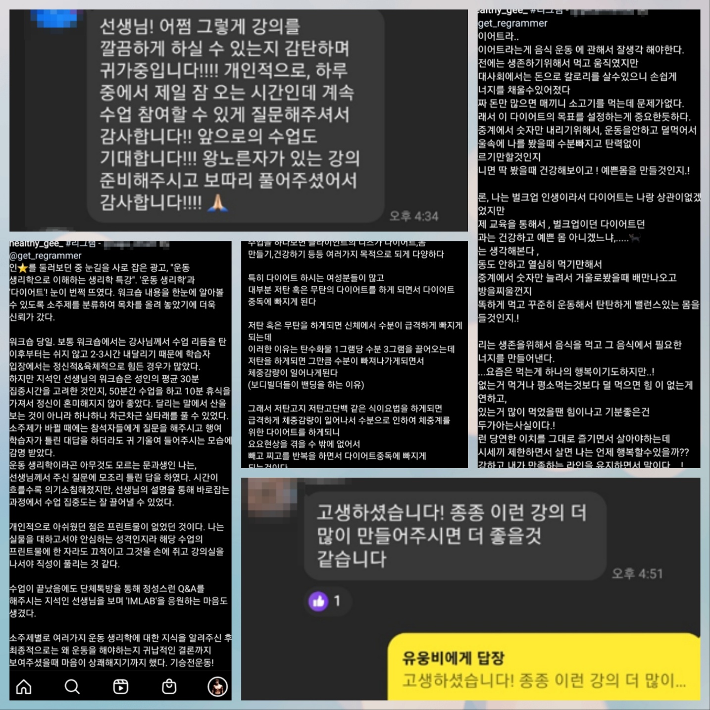 따라서 저는 인체의 메카니즘을 통해, 건강을 해치지 않고, 원하는 목표에 도달 할 수 있도록, 막중한 책임감을 가지고 수업에 임하고 있습니다.