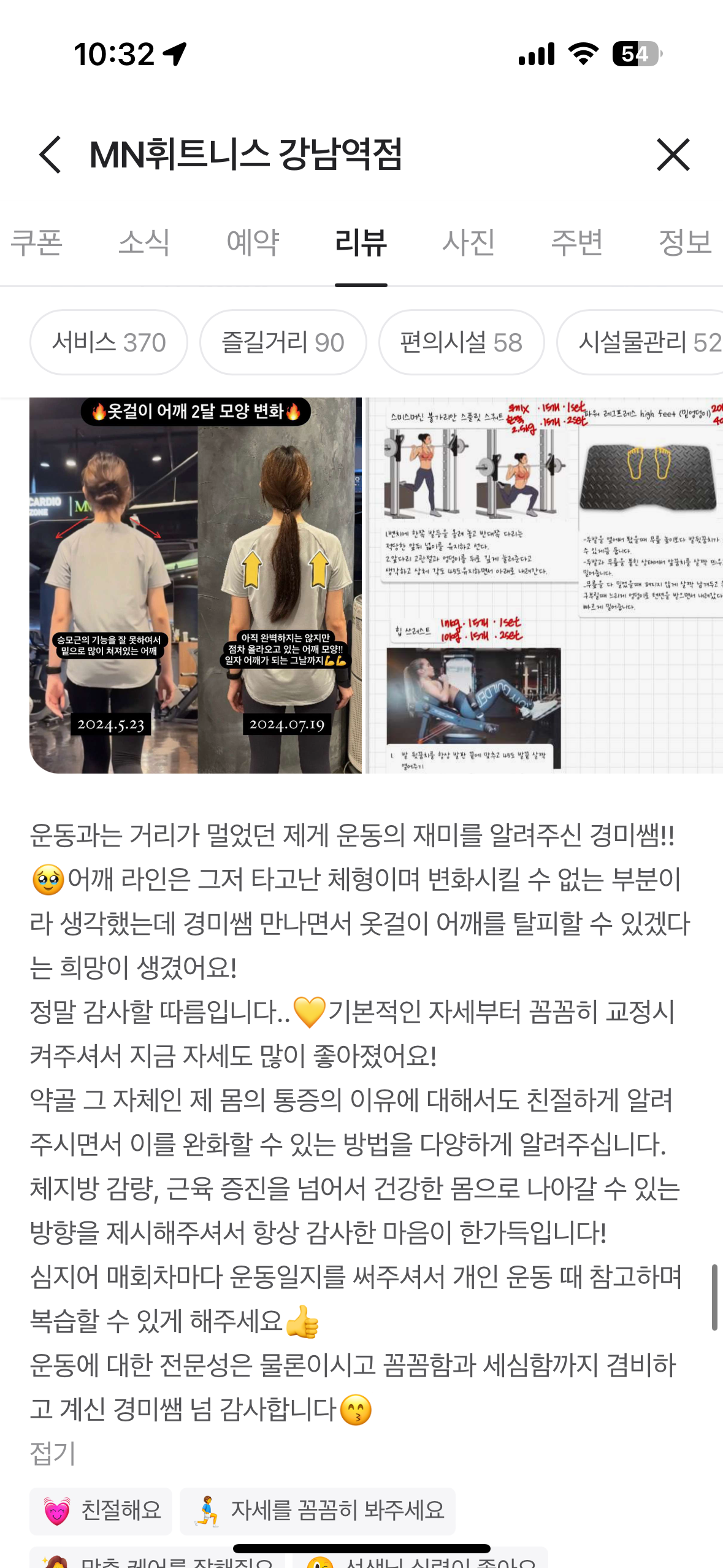 하지만 저는 첫 상담부터 꼼꼼하게 회원님들 니즈를 파악하고 스타일에 맞춰드릴 수 있게 노력하기 때문에 웨이트와 친해질 수 있도록 도와 드리고 있습니다.