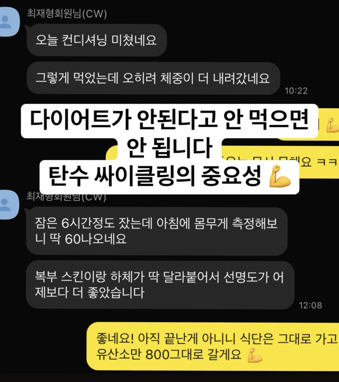 저는 회원님과의 소통을 가장 중요하게 생각합니다. 운동에 대한 어려움이나 고민이 있다면 언제든 이야기해주세요. 회원님들의 피드백을 기반으로 최적의 트레이닝 플랜을 설계하겠습니다.