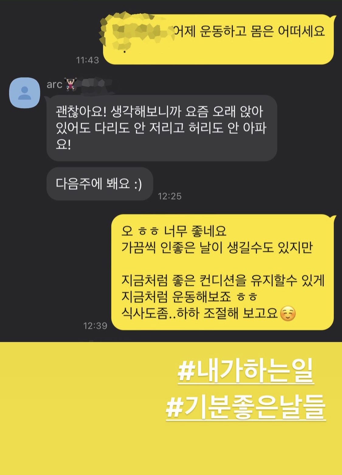 1️⃣수업한 것은 바로 운동일지를 작성해 드리고 중요 포인트도 메모하여 보내드립니다.