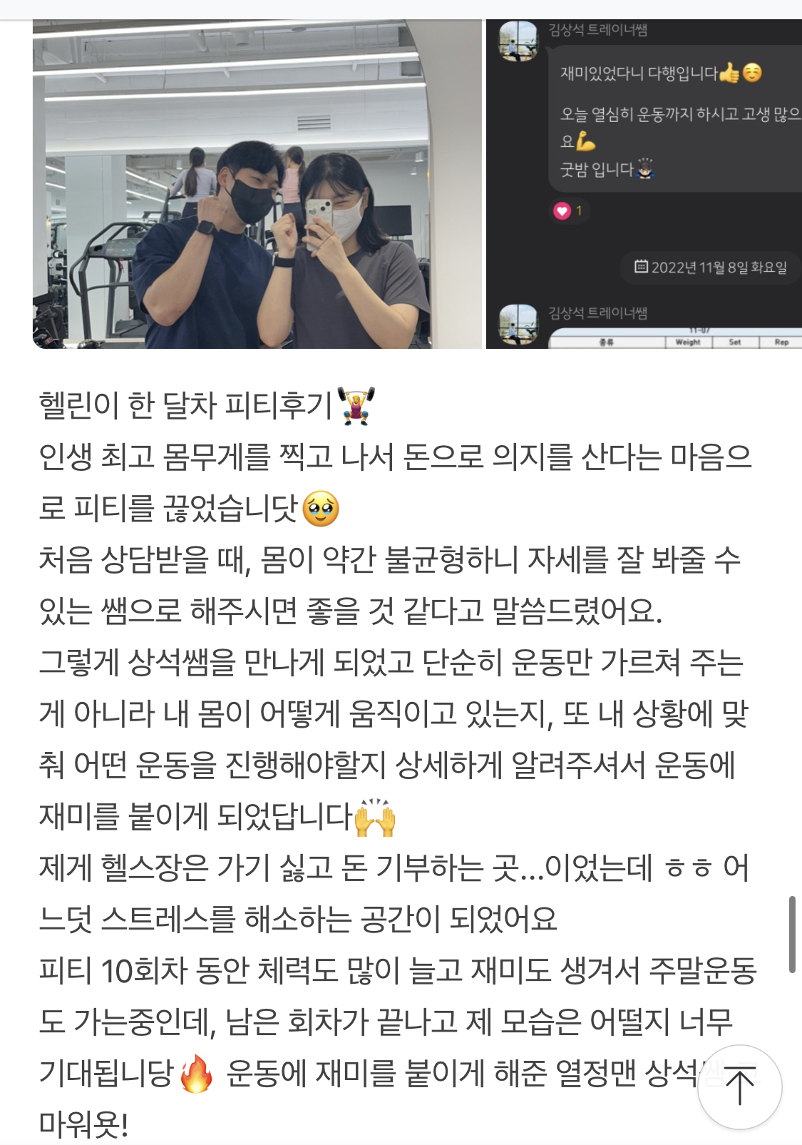제게는 자존감이 낮아 대화도 힘들었던 회원님이 바디 프로필을 찍을 정도로 변화를 이룬 회원님,