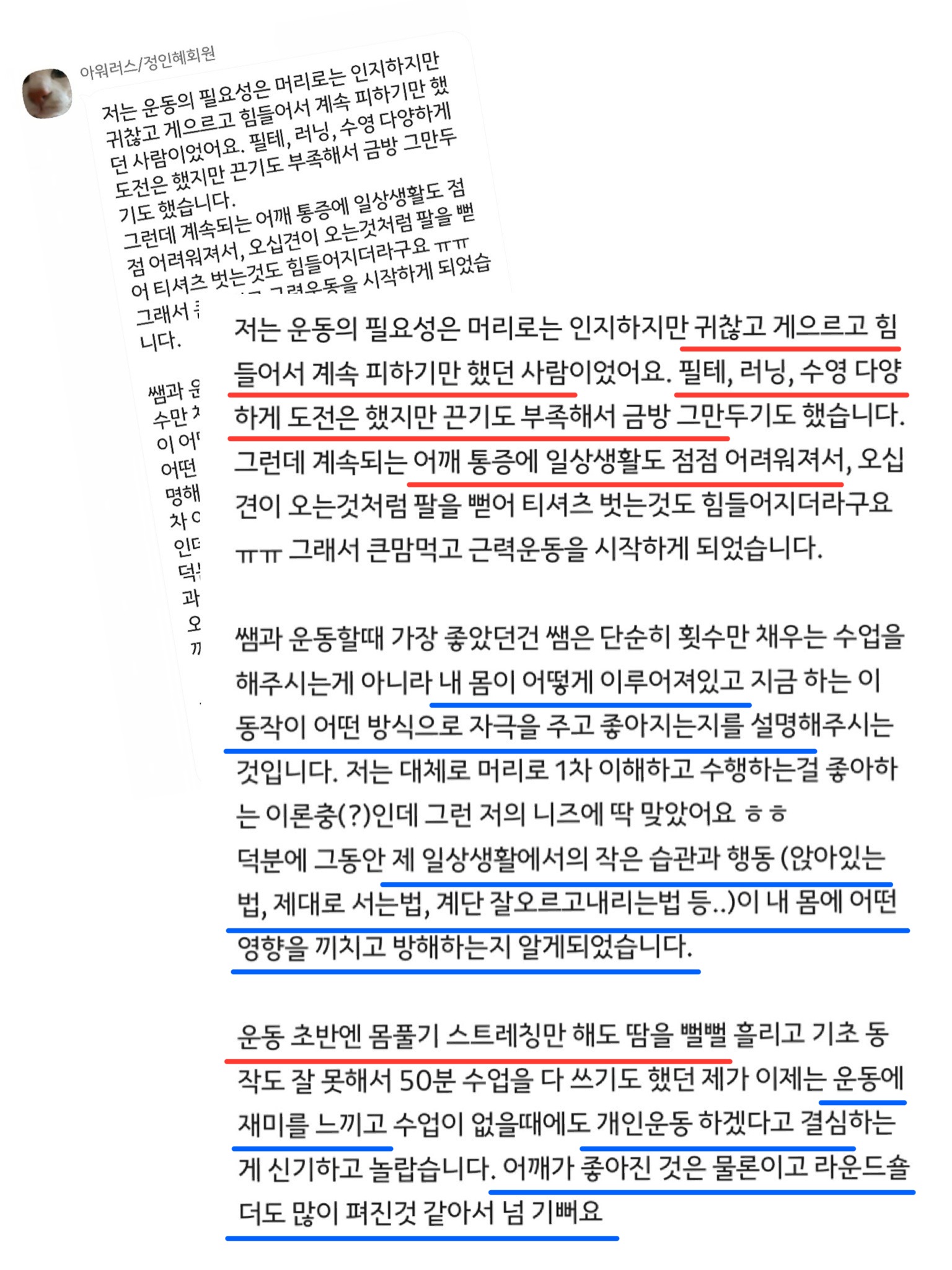 💡 운동과 코칭을 통해 회원님의 삶 전체에 긍정적인 변화를 만들어 갑니다.