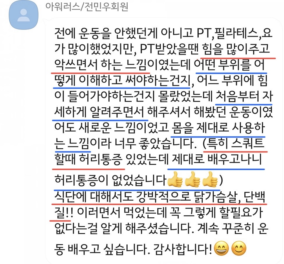 🏋️♀️ 단순히 근육의 모양을 만드는 운동이 아니라, 올바른 움직임을 통해 자연스럽게 근육을 활용하고 효율적으로 힘을 쓰며, 건강을 되찾는 것이 중요하다고 생각합니다.