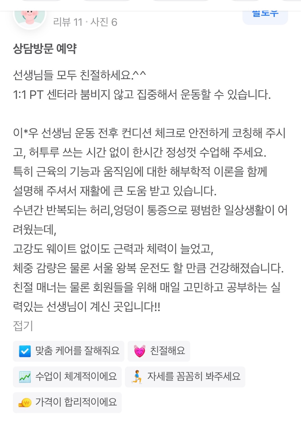 1:1 맞춤, ‘좋은 패턴의 움직임’을 찾아드리는 이인우 트레이너입니다