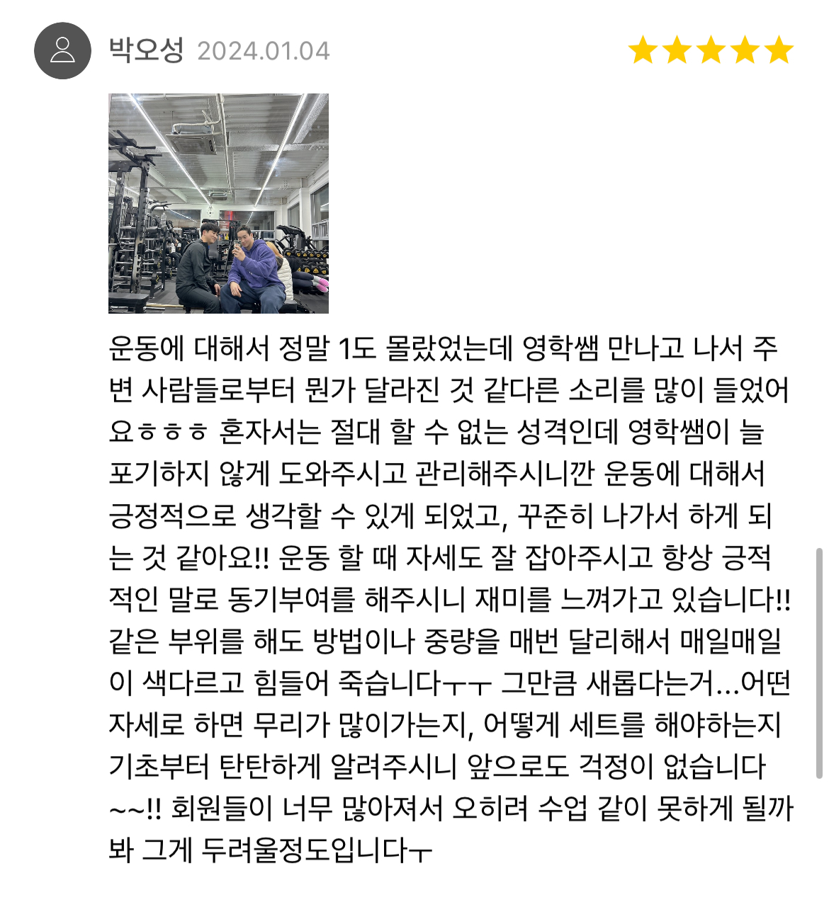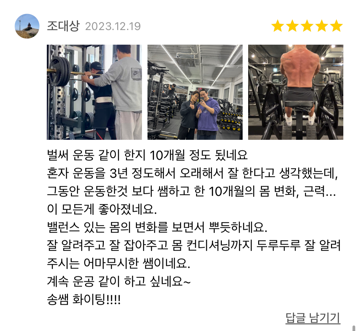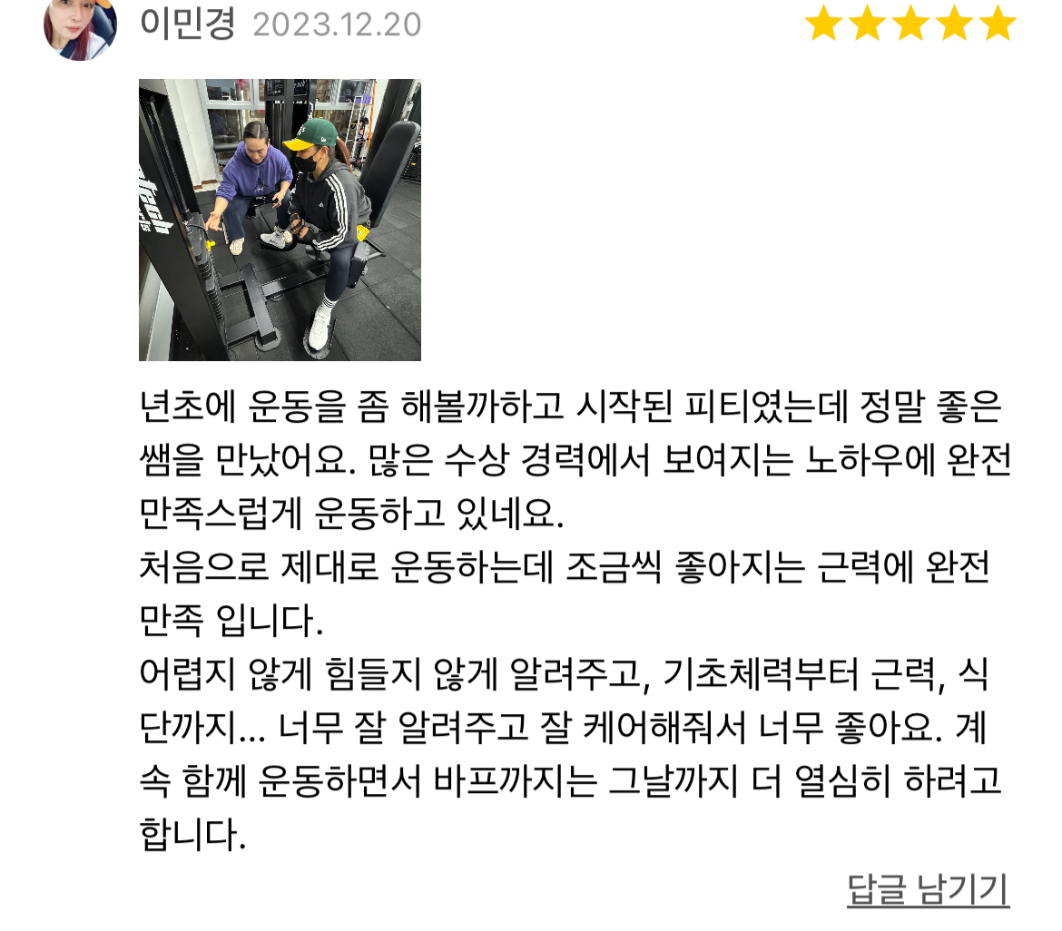사람은 모두 다르듯 성향 성격또한 모두 다를 수 밖에 없습니다. 각자의 성격 성향등을 고려해 운동과 수업이 즐거울 수 있도록 맞춤수업을 진행합니다. 초보자는 추후에 스스로 운동할 수 있도록 중급자는 상급자로 나아갈 수 있도록 모두 디테일하게 레슨을 진행하며 주기적인 피드백과 소통을 통하여 회원님께서 지치지 않도록 이끌어드립니다. 단순히 운동만이 아닌 생활패턴 식사 스스로를 변화시킬 수 있도록 안내합니다.