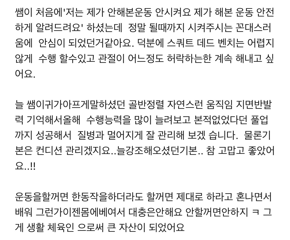 저는 몸만이 아니라 삶까지 변화시킬 수 있는 운동을 함께 하고 싶습니다.