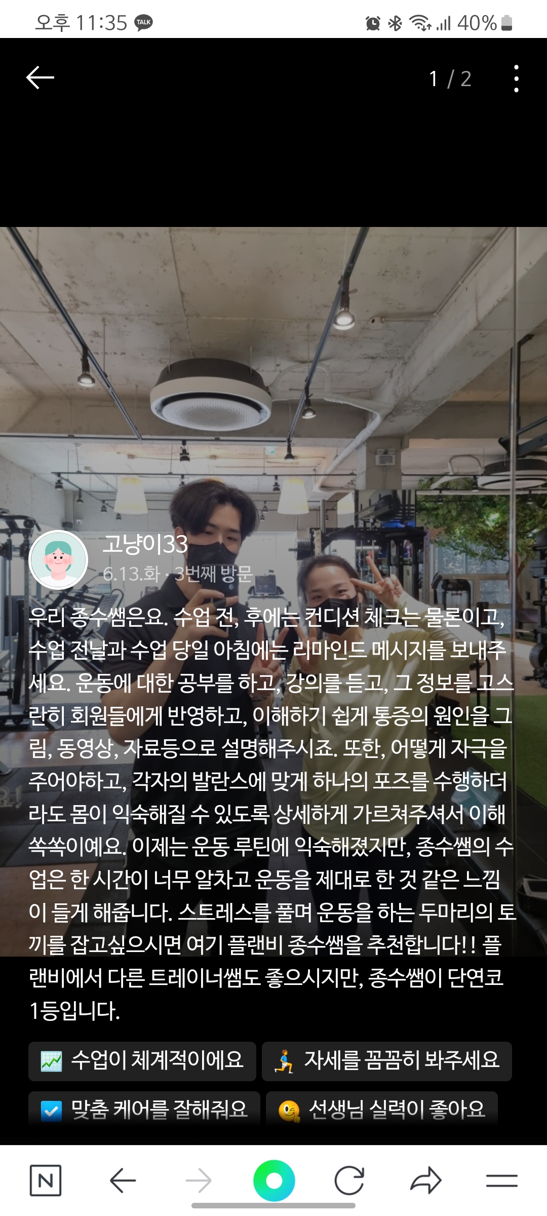 정확한 피드백을 통해 회원님이 스스로 운동에 참여할 수 있도록 돕습니다.