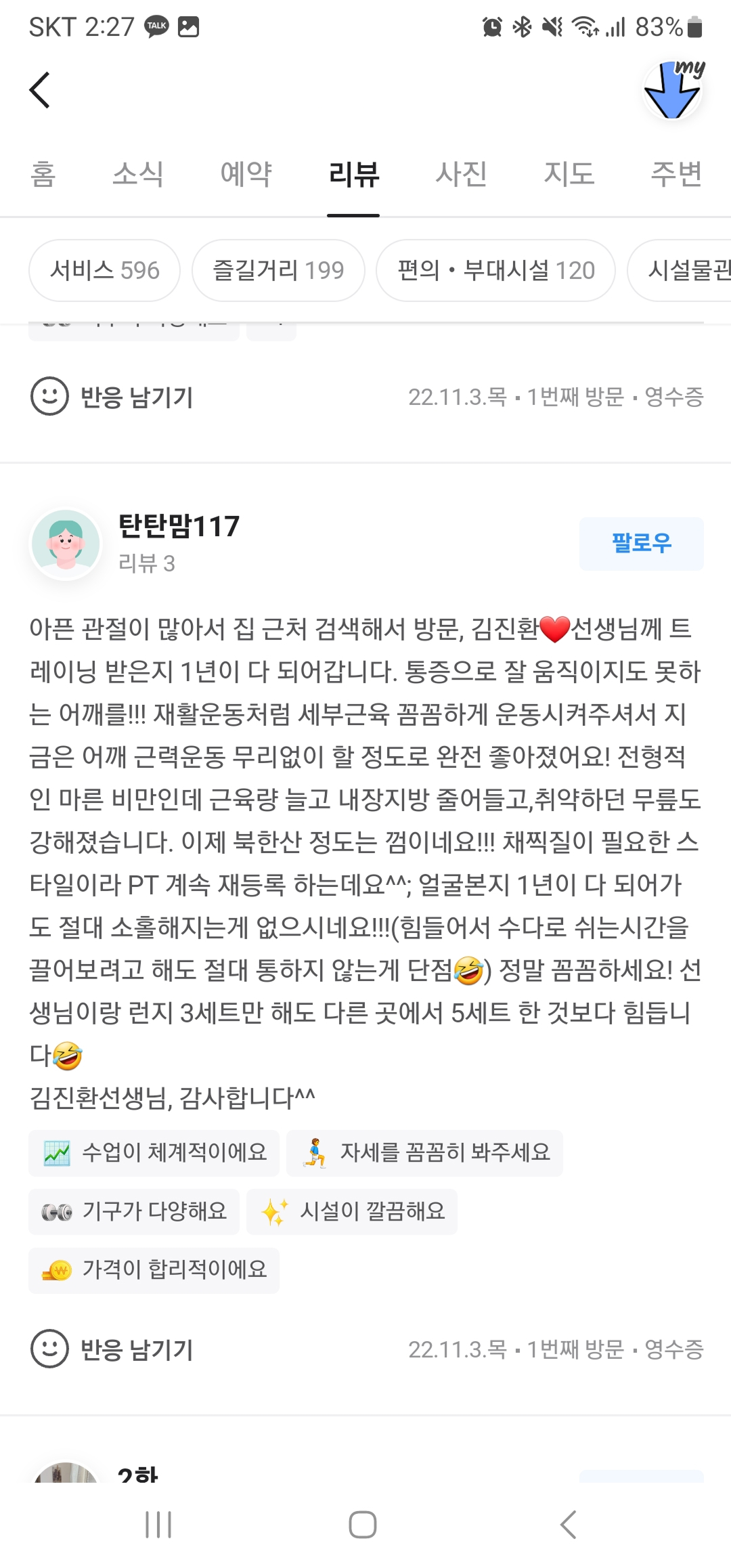 회원님 스스로 내 몸을 내 의지대로 움직일 수 있도록 돕는 것이 저의 목표입니다.