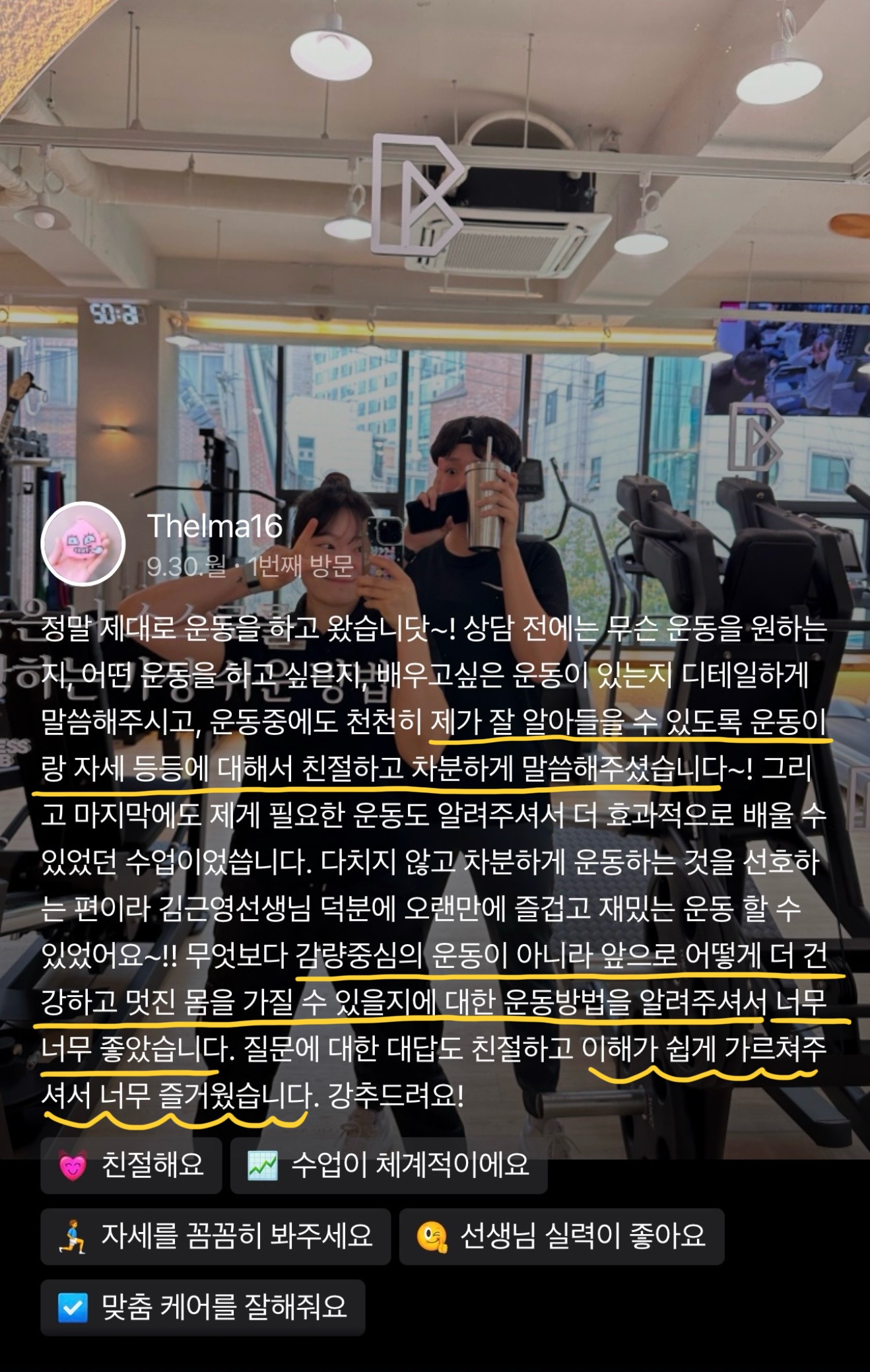 운동을 해낼 수 있다는 ‘성공 경험’이 반복되는 구조를 만들어드리고자 합니다.