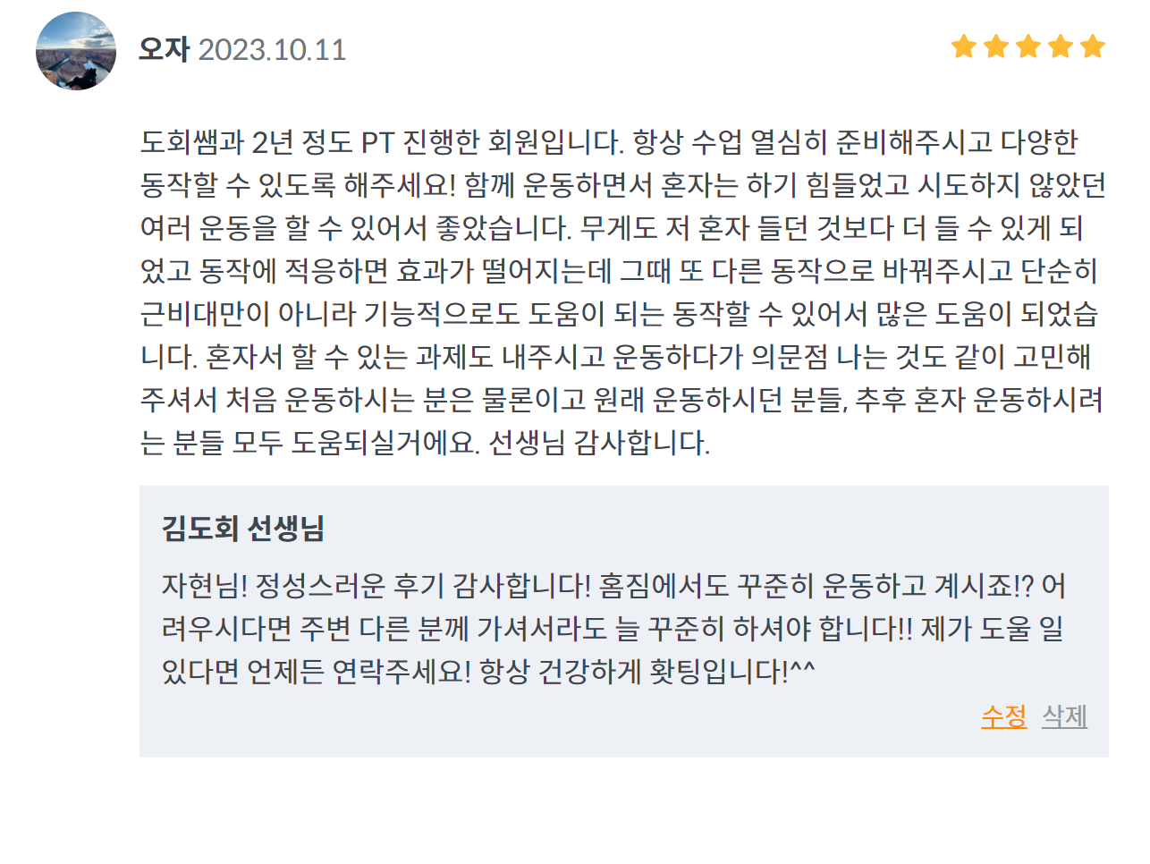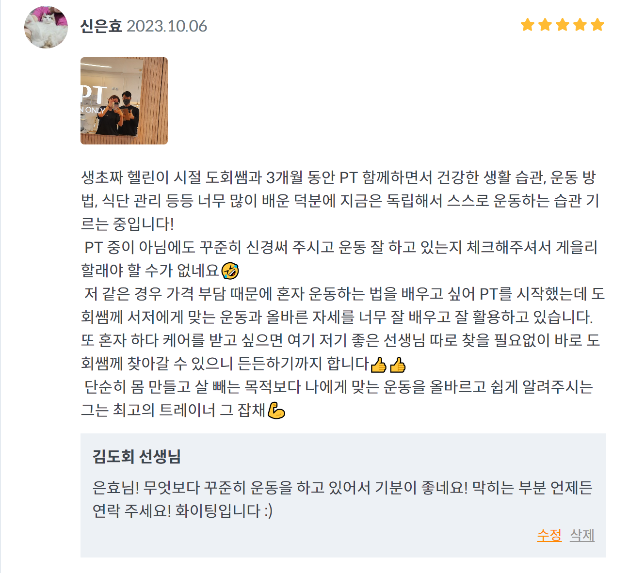 저를 믿어준 회원님들의 삶이 운동으로 인해 저처럼 변화가 생기셨으면 좋겠습니다.