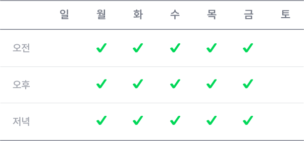 회원님과 약속한 시간에 시작됩니다. 사전에 계획을 세워서 들어가되, 회원님의 컨디션을 고려해 진행됩니다. 길고 꾸준히 운동할 수 있도록 부상방지를 최우선으로 합니다.